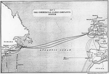 | The Company Waterville | The diagrams summarise the final cable connections for the Commercial Cable Company . Connections to Newfoundland (the other main cable base for other companies) are shown but not the many connections from there by rival companies. Nor are the Western Union connections with Canso, Nova Scotia shown. |